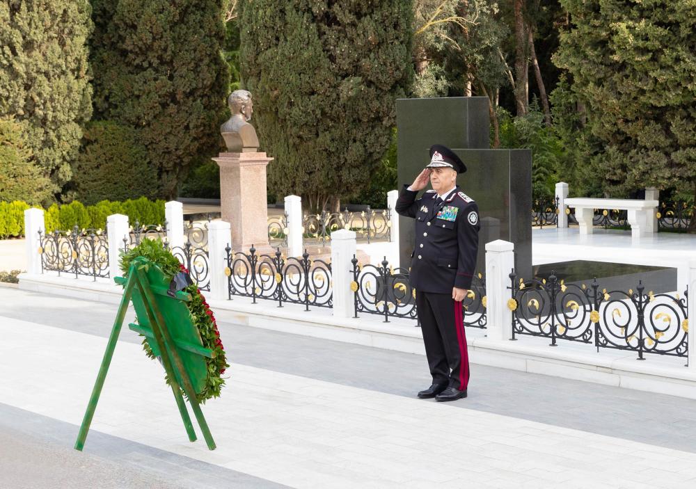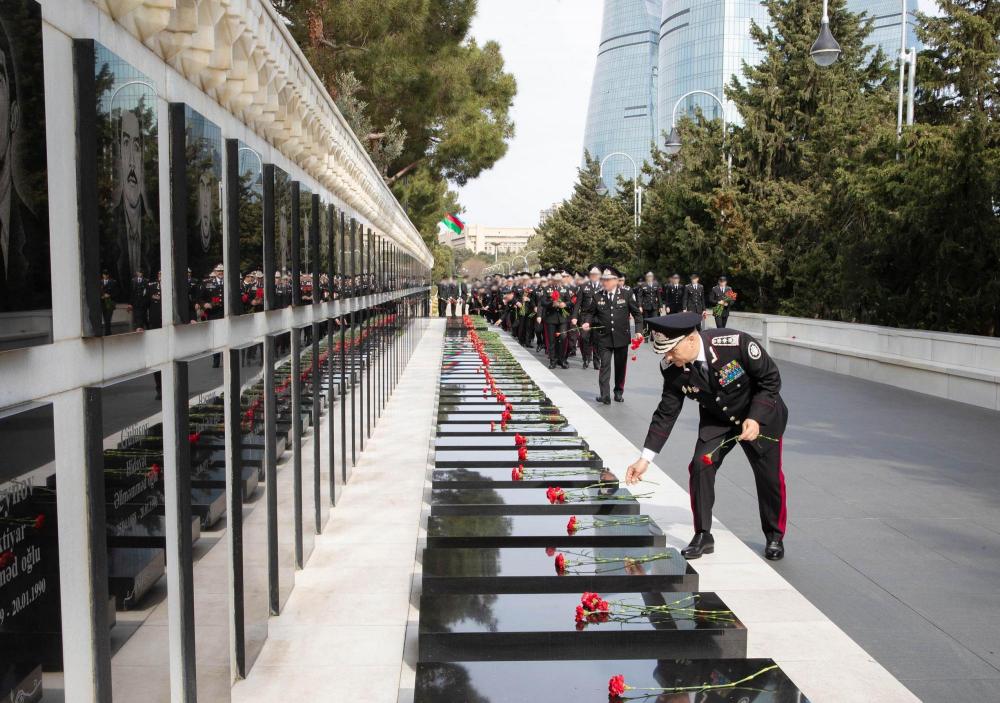 Daha sonra Şəhidlər xiyabanında respublikamızın müstəqilliyi yolunda canlarından keçmiş şəhidlərimizin və Azərbaycanın Milli Qəhrəmanları olan təhlükəsizlik orqanlarının mərhum əməkdaşlarının məzarları ziyarət olunmuş, Xidmətin adından “Əbədi məşəl” abidəsinin önünə əklil qoyulmuşdur.