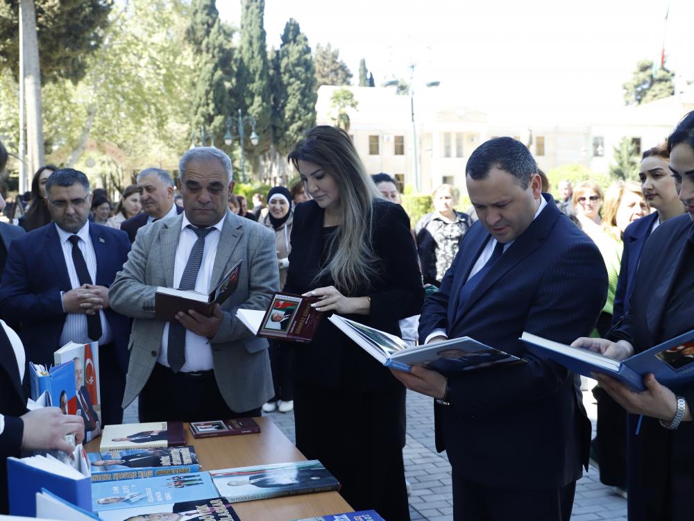 Tədbir iştirakçıları əvvəlcə Ümummilli Lider Heydər Əliyevin adını daşıyan meydanda Ulu Öndərin abidəsini ziyarət edərək önünə gül dəstələri qoymuş, onun əziz xatirəsini dərin hörmət və ehtiramla yad etmişlər. Ardınca Heydər Əliyev Mərkəzinin qarşısında təşkil olunmuş sərgiyə baxış keçirilmişdir.