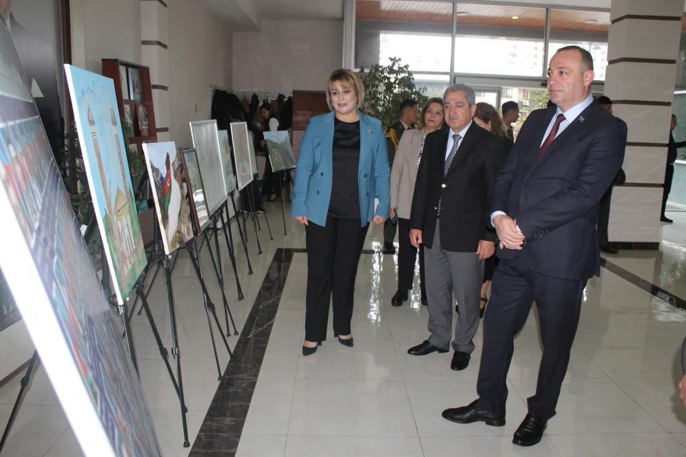 Öncə qonaqlar Mərkəzin foyesində “Şanlı Zəfər Tariximiz” adlı rəsm sərgisi ilə tanış oldular.