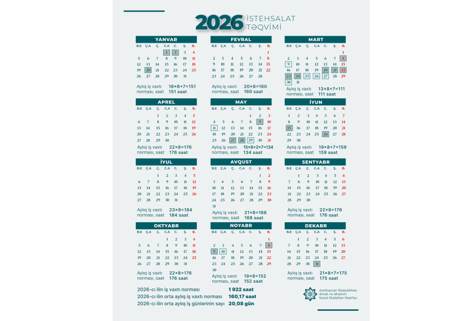 Gələn il üçün iş vaxtı norması və istehsalat təqvimi təsdiq edilib