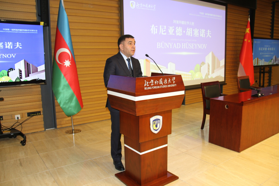Azərbaycanın Çindəki səfiri Bünyad Hüseynov iki ölkə arasında münasibətlərin tarixindən və hazırkı vəziyyətindən danışıb, konfransın Azərbaycan ilə Çinin elmi-mədəni dairələrinin daha da yaxınlaşmasına önəmli töhfə verəcəyinə əminliyini bildirib. O, Azərbaycan mədəniyyətinin Çində, Çin mədəniyyətinin isə Azərbaycanda təbliğinə yönəlmiş çoxsaylı tədbirlərin xalqların bir-birinə daha da yaxınlaşması üçün zəmin yaratdığını, Azərbaycanda Konfutsi institutlarının fəaliyyəti də daxil olmaqla Çin dilinin, Çində isə Azərbaycan dilinin tədrisinin əhəmiyyətini vurğulayıb. Bildirib ki, PXDU-da Azərbaycan dilinin ixtisas kimi tədrisi, Azərbaycan dili kafedrasının azərbaycanşünaslıqla bağlı çoxsaylı araşdırmalar aparması və elmi tədbirlərin təşkili sayəsində Çində azərbaycanşünaslıq müstəqil bir tədqiqat istiqaməti kimi formalaşmağa başlayıb.