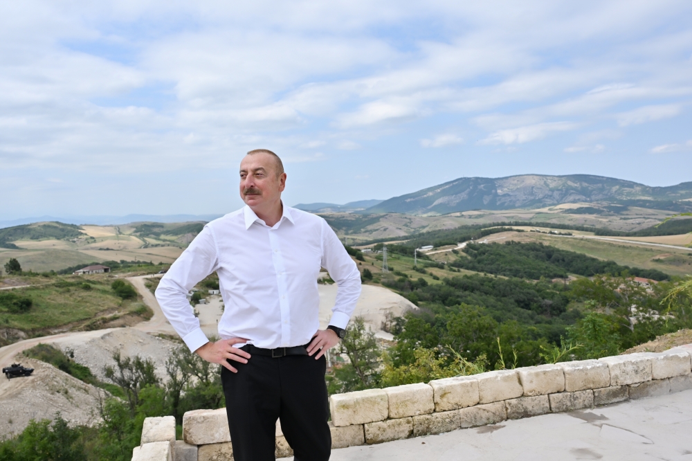 İlham Əliyev Kəlbəcər şəhərində inzibati binanın təməlini qoydu