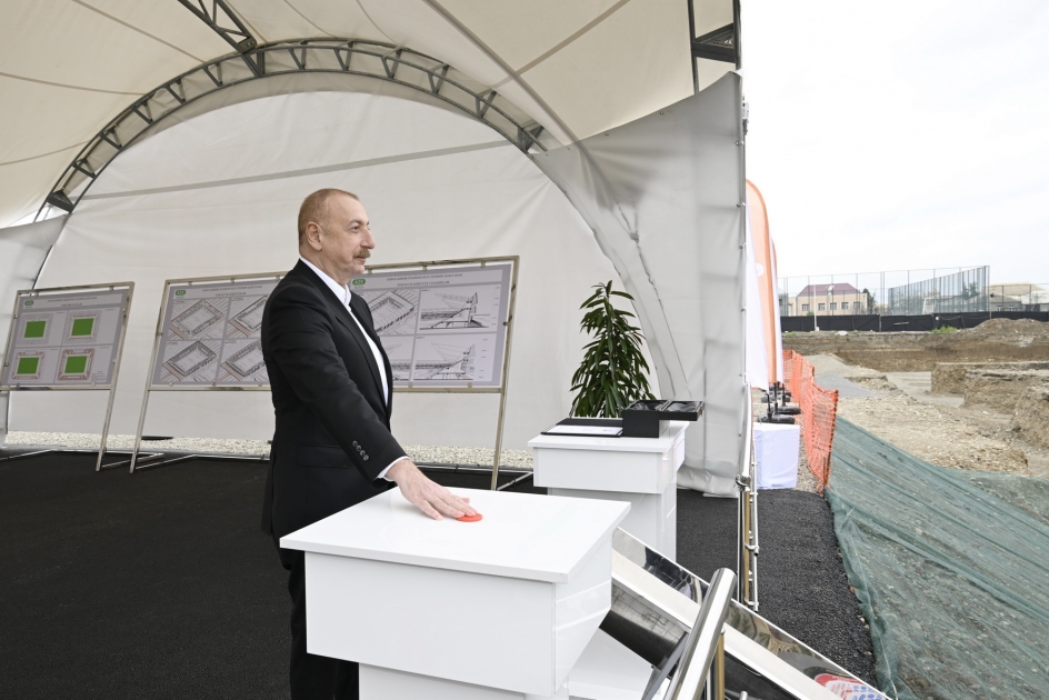 Prezident İlham Əliyev Gəncə şəhər stadionunun təməlini qoyub