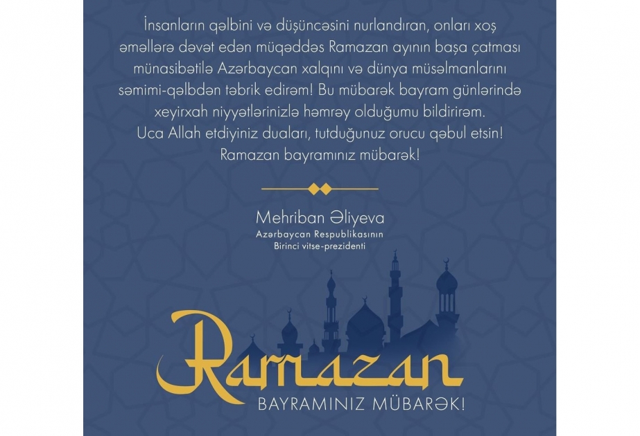 Mehriban Əliyeva Ramazan bayramı münasibətilə paylaşım edib