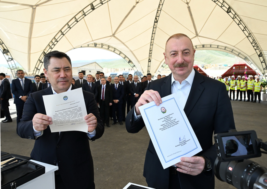 Azərbaycan Prezidenti İlham Əliyev və Qırğızıstan Prezidenti Sadır Japarov Xıdırlı kənd tam orta məktəbinin təməlini qoydular.