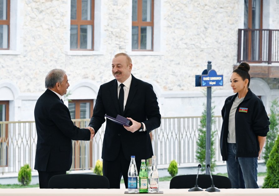 Azərbaycan Respublikasının Prezidenti İlham Əliyev və birinci xanım Mehriban Əliyeva Şuşada birinci yaşayış kompleksinin açılışında iştirak edib və şəhərə köçmüş ilk sakinlərlə görüşüblər.