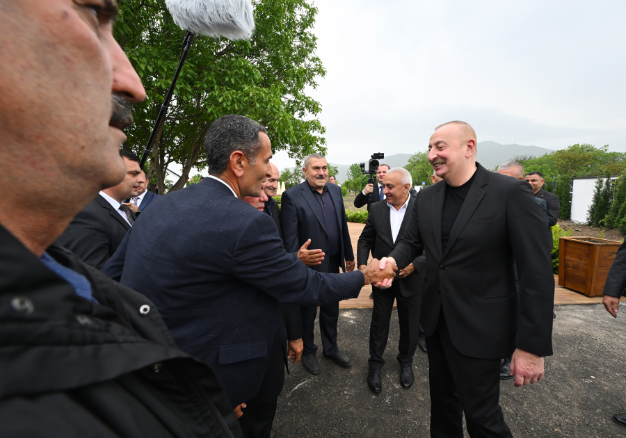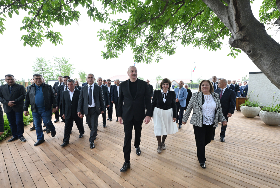 AZƏRTAC xəbər verir ki, dövlətimizin başçısı və birinci xanım əvvəlcə sakinlərlə söhbət etdilər.