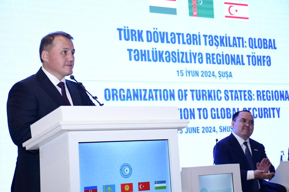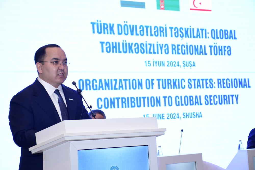 Çıxış edən Qazaxıstanın “AMANAT” Partiyasının İcra katibi Daulet Kəribek ilk olaraq beynəlxaq konfransa dəvətə görə təşəkkür edib, bu platformanın Türk Dövlətləri Təşkilatının inkişafına və daha da möhkəmlənməsinə töhfə verəcəyinə inamını bildirib. Onun sözlərinə görə, tədbirin qardaş Azərbaycanın mədəniyyət beşiyi, 2024-cü ildə “İslam dünyasının mədəniyyət paytaxtı” elan edilmiş Şuşa şəhərində təşkil edilməsinin xüsusi önəmi var: “Qazaxıstan Prezidenti Kasım-Jomart Tokayev cari ilin mart ayında Azərbaycana dövlət səfəri zamanı Şuşada olub. Qarabağın yenidən dirçəldilməsi bizi sevindirir. Burada aparılan işləri, sürətli inkişafı öz gözlərimlə gördüm. Qazaxıstan Azərbaycanın ərazi bütövlüyü və suverenliyinə qətiyyətli dəstəyini hər zaman ifadə edib. Fürsətdən istifadə edərək, ərazi bütövlüyünü beynəlxalq hüquq normalarına və BMT Təhlükəsizlik Şurasının qətnamələrinə uyğun olaraq təmin etməsi münasibətilə qardaş Azərbaycan xalqını təbrik edirəm”.