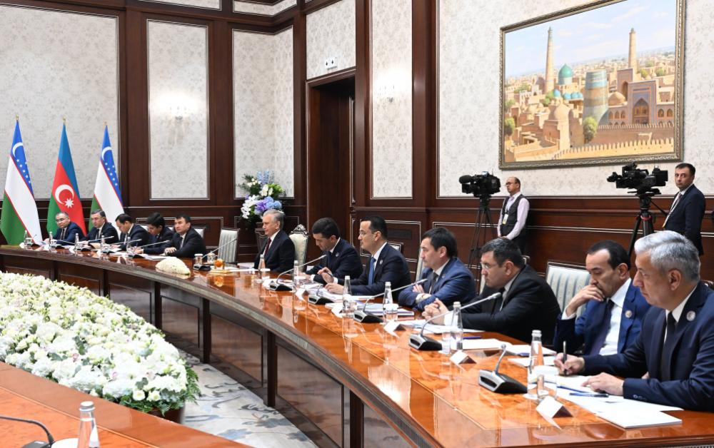 Hörmətli nümayəndə heyətlərinin üzvləri, son bir neçə il ərzində Özbəkistan-Azərbaycan əməkdaşlığı xeyli genişlənib. Parlamentlər, hökumətlər, nazirliklər və idarələr arasında sıx təmaslar var. Mütəmadi olaraq, Hökumətlərarası Komissiyanın iclasları, Biznes Şurası, forumlar, sərgilər və mədəniyyət tədbirləri keçirilir. Biznes dairələri arasında tərəfdaşlıq genişlənir.