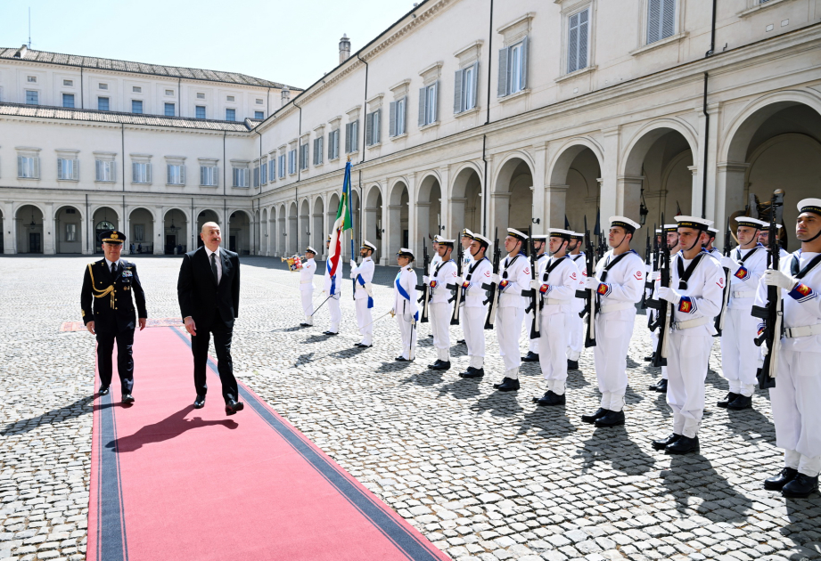 AZƏRTAC xəbər verir ki, Romanın “Quirinale” Sarayında Prezident İlham Əliyevin şərəfinə fəxri qarovul dəstəsi düzülmüşdü.