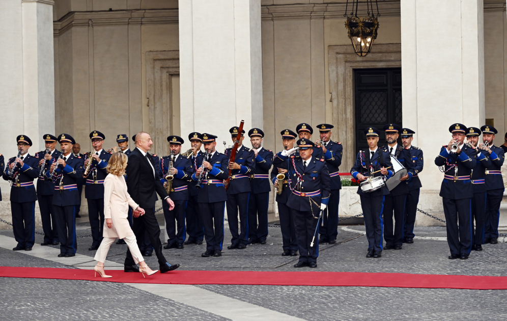 Azərbaycan Prezidenti İlham Əliyev və İtaliya Nazirlər Şurasının sədri Ciorcia Meloni fəxri qarovul dəstəsinin qarşısından keçdilər.