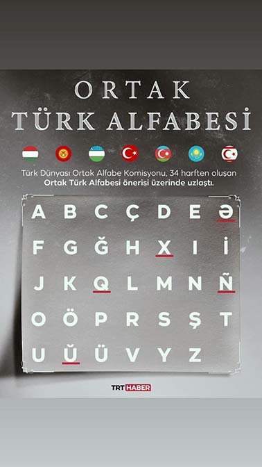 Müstəqil türk dillərinə heç bir qüvvə müdaxilə edə bilməz XXI əsr Türk əsridir. Bu günlərdə türk dünyasının inkişafı istiqamətində daha bir mühüm addım atılıb. Uzun zamandır müzakirələri aparılan Ortaq Türk Əlifbası razılaşdırılıb. Belə bir razılaşma sentyabrın 9-dan 11-dək Bakıda Beynəlxalq Türk Akademiyası və Türk Dil Qurumu tərəfindən təşkil olunan Türk Dünyası Ortaq Əlifba Komissiyasının üçüncü iclasında əldə olunub. Bu barədə Beynəlxalq Türk Akademiyasının və Türk Dil Qurumunun Ortaq Türk Əlifbasına dair mətbuata birgə açıqlamasında bildirilib.