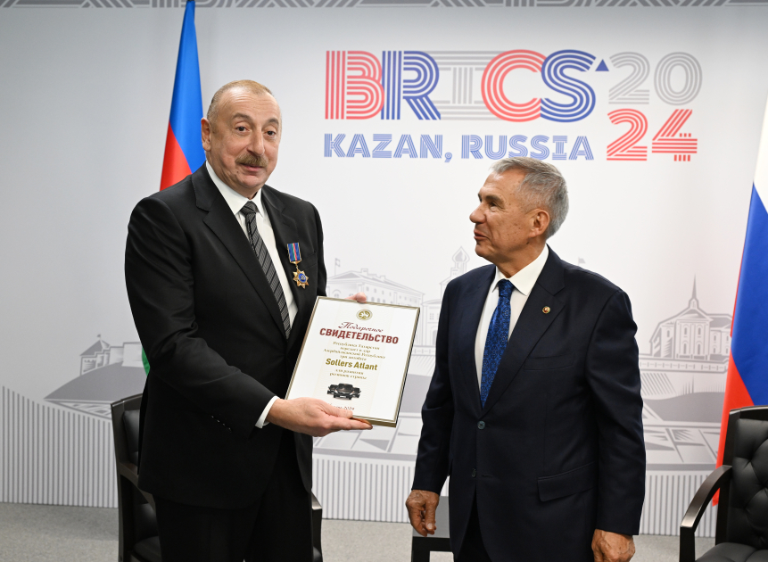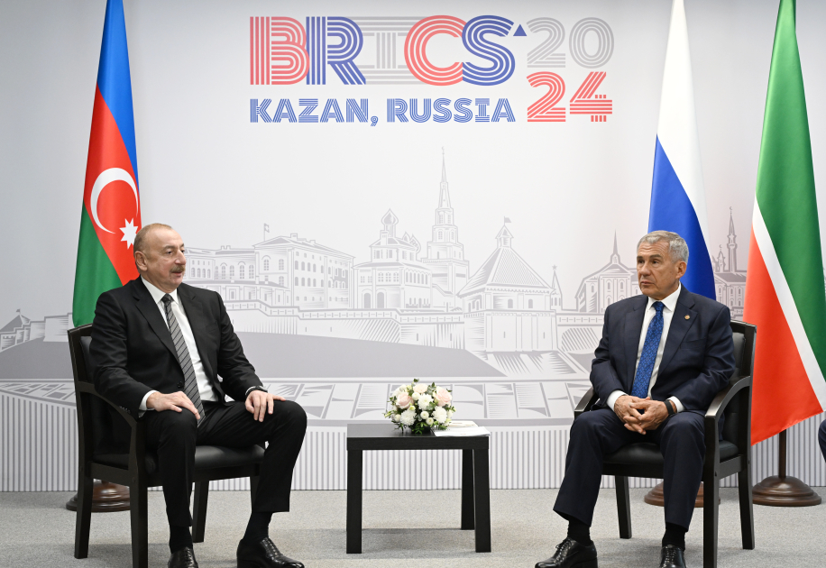 -Rüstəm Nurqaliyeviç, sağ olun. Bir daha qardaş torpaqda olmağıma şadam. İlk növbədə, Sizi və Tatarıstan Respublikasının bütün sakinlərini bu əlamətdar hadisə - BRICS sammitinin, həmçinin “BRICS+”un keçirilməsi münasibətilə təbrik etmək istərdim. Bu, Rusiya Federasiyası rəhbərliyinin respublikaya, şəxsən Sizə, Tatarıstan vətəndaşlarına xüsusi münasibətinin təzahürüdür, həmçinin Tatarıstanın Sizin rəhbərliyinizlə nail olduğu potensialın göstəricisidir. Çünki belə bir irimiqyaslı sammitin keçirilməsi, əlbəttə ki, tədbirlərin, dövlət başçılarının ikitərəfli görüşlərinin təşkili üçün resursların, infrastrukturun, o cümlədən mehmanxana şəbəkəsinin olmasını tələb edir. Ona görə də əvvəlcədən səmimi təbriklərimi çatdırıram. Əminəm ki, hər şey ən yüksək səviyyədə keçəcək.