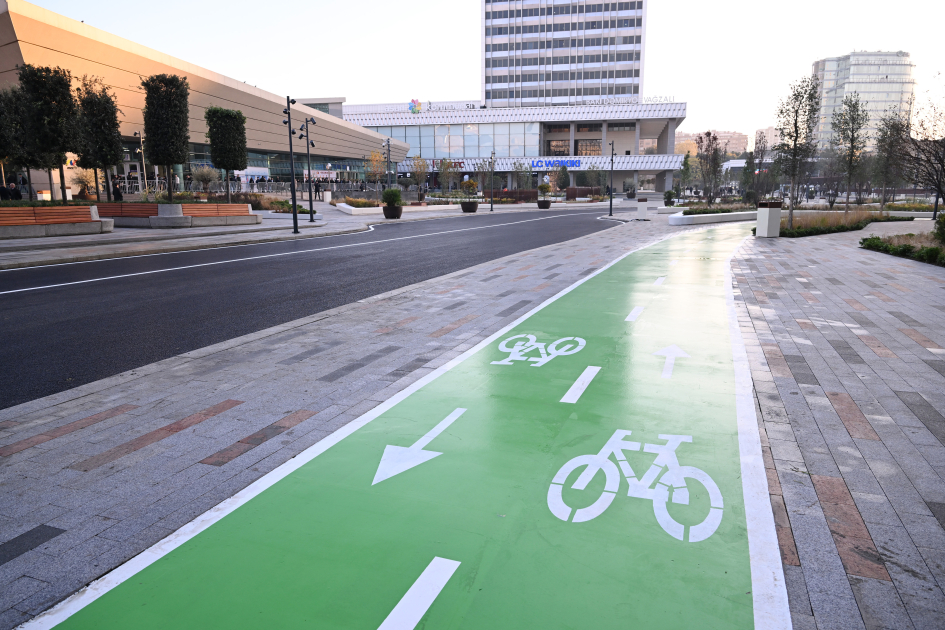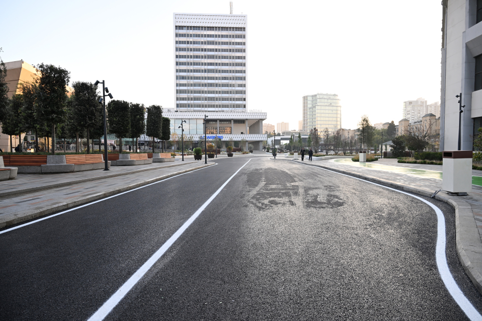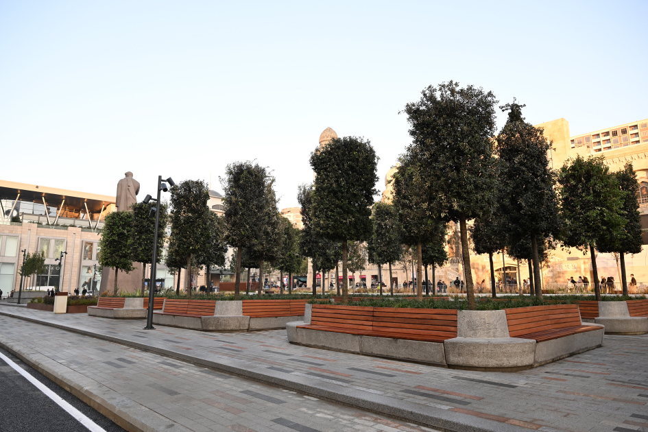 Bildirildi ki, ümumi sahəsi 3,5 hektar olan ərazidə minik avtomobillərinin hərəkəti ləğv edilərək, müasir tələblərə cavab verən avtobus, piyada və velosiped zolaqları yaradılıb. Köhnə döşəmə örtükləri ləğv edilərək, qranit bordürlər düzülüb və təqribən 22 min kvadratmetr qranit döşəmə örtüyü salınıb. Ərazidə ümumi sahəsi təqribən 2300 kvadratmetr olan yaşıllıq yaradılıb, İtaliyadan gətirilmiş 200-dən çox ağac, 15 mindən çox kol əkilib, işıqlandırma işləri aparılıb, müasir oturacaqlar quraşdırılıb. Həmçinin müasir tikinti norma və qaydalarına cavab verən 2 fəvvarə, 2 dayanacaq inşa edilib, elektrik avtobusları üçün 4 enerjidoldurma məntəqəsi quraşdırılıb.