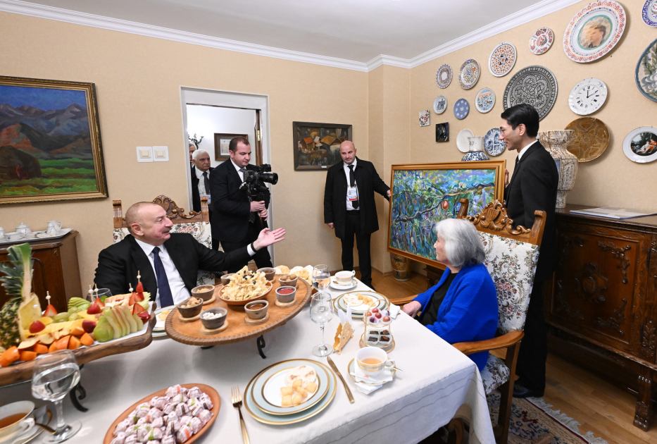 Prezident İlham Əliyev əvvəlcə ev muzeyi ilə tanış oldu.