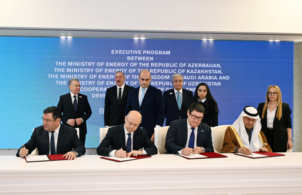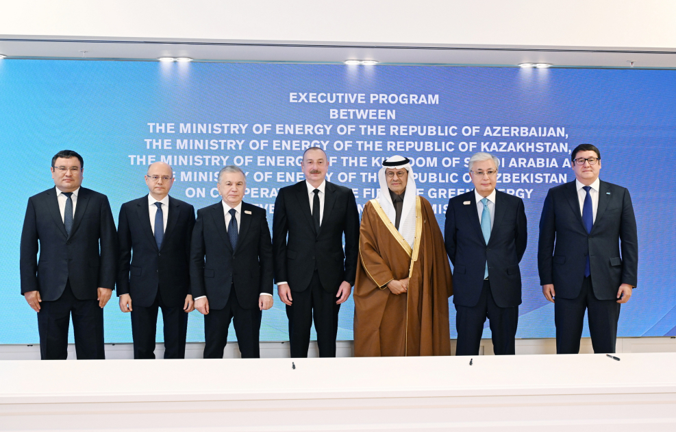 Daha sonra Azərbaycan, Qazaxıstan və Özbəkistan prezidentlərinin iştirakı ilə Azərbaycan, Qazaxıstan, Özbəkistan, Səudiyyə Ərəbistanı Krallığı arasında “Yaşıl enerjinin inkişafı və ötürülməsi sahəsində əməkdaşlıq üzrə Azərbaycan Respublikasının, Qazaxıstan Respublikasının, Özbəkistan Respublikasının və Səudiyyə Ərəbistanı Krallığının Energetika nazirlikləri arasında İcra Proqramı”nın imzalanması mərasimi olub.
