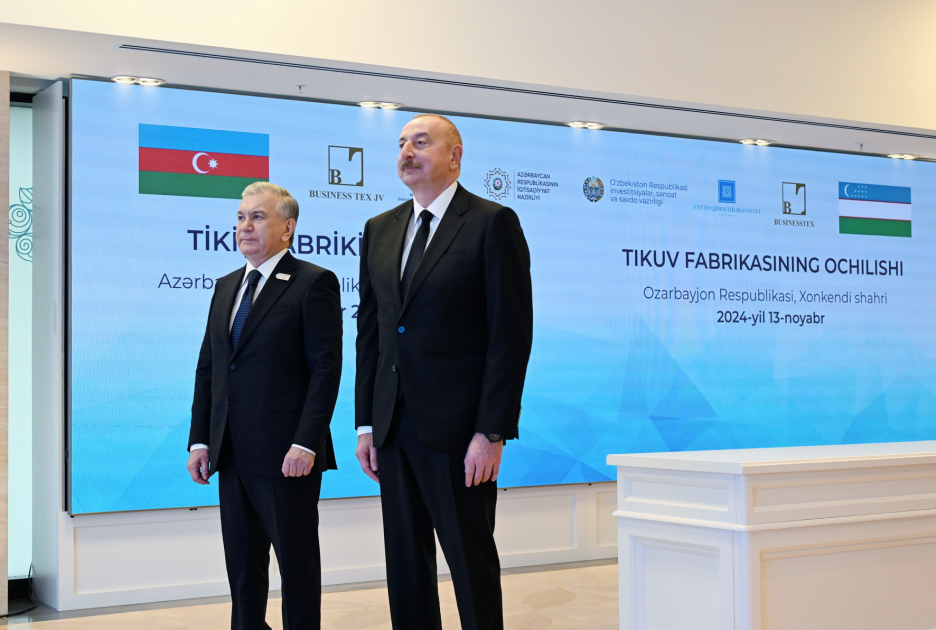 AZƏRTAC xəbər verir ki, sonra Azərbaycan və Özbəkistan prezidentlərinin iştirakı ilə Xankəndi şəhərində tikiş fabrikinin videobağlantı vasitəsilə açılış mərasimi olub.