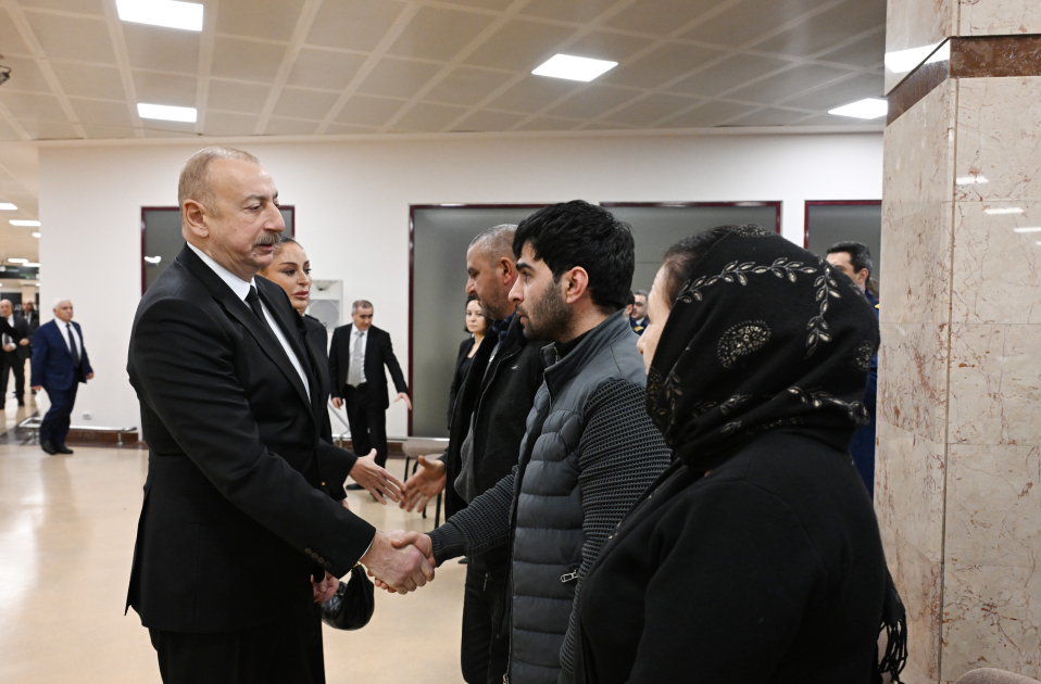 Dekabrın 29-da Azərbaycan Respublikasının Prezidenti İlham Əliyev və birinci xanım Mehriban Əliyeva Bakı-Qroznı istiqamətində uçan təyyarənin qəzaya uğraması nəticəsində həlak olan ekipaj üzvlərinin Heydər Əliyev Beynəlxalq Aeroportunda keçirilən vida mərasimində iştirak edib, onların ailə üzvlərinə və yaxınlarına başsağlığı veriblər.