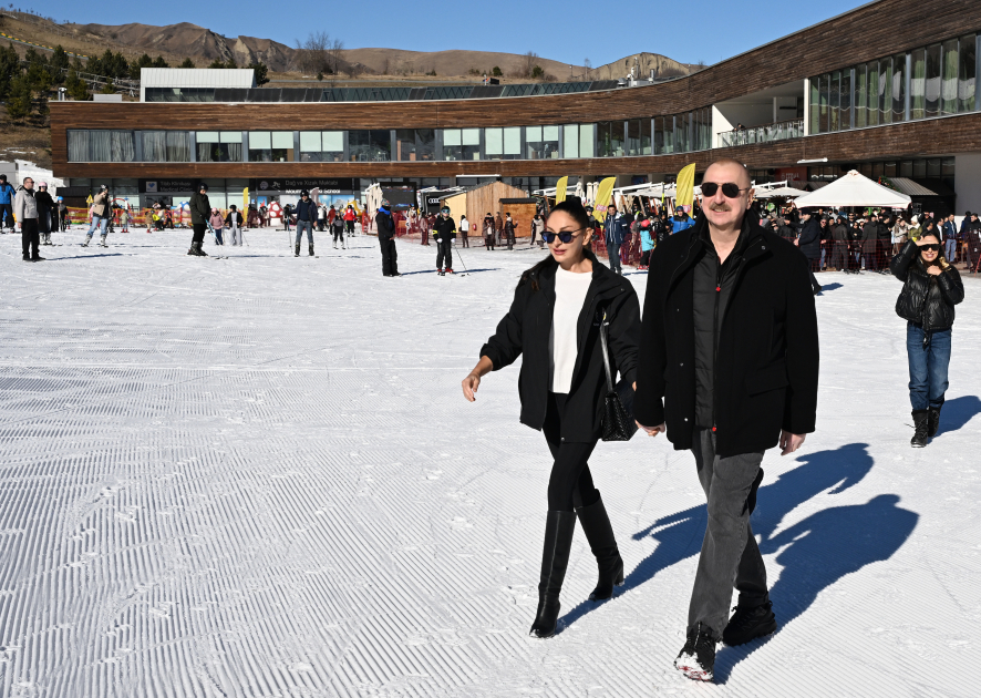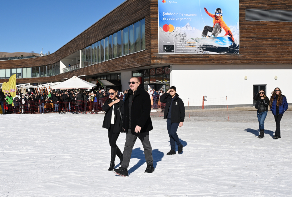 Sonra dövlətimizin başçısı, birinci xanım və ailə üzvləri Şahdağ Turizm Kompleksinin ərazisində inşa edilən Xizək Stadionu Kompleksinin “Xizək klubu” binasının tikintisi ilə tanış olublar.