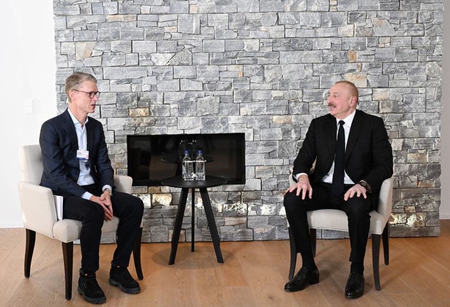 Prezident İlham Əliyev Davosda “Carlsberg Group” şirkətinin Baş icraçı direktoru Yakob Aarup-Andersen ilə görüşüb