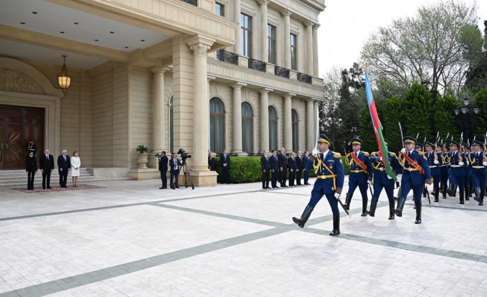 AZƏRTAC-ın xəbərinə görə, hər iki ölkənin Dövlət bayraqlarının dalğalandığı meydanda Almaniya Federativ Respublikasının Prezidentinin şərəfinə fəxri qarovul dəstəsi düzülüb.