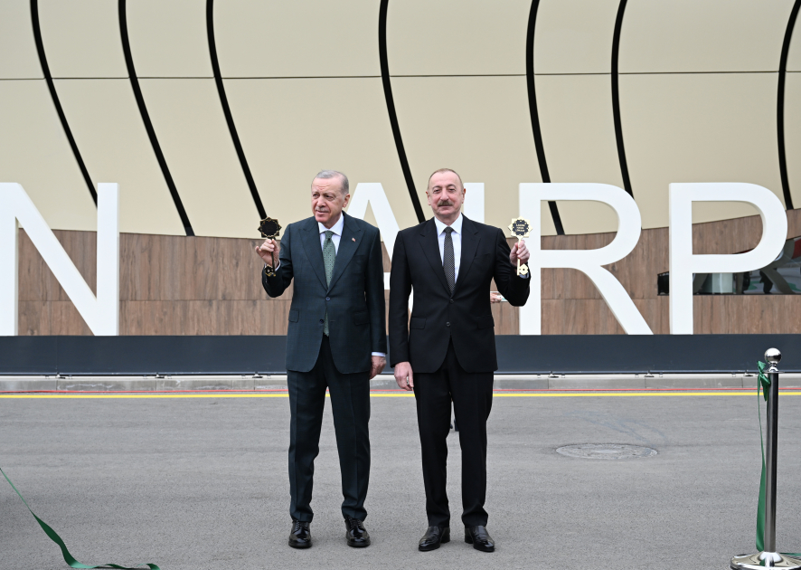 AZƏRTAC xəbər verir ki, Azərbaycan Respublikasının Prezidenti İlham Əliyev və Türkiyə Respublikasının Prezidenti Rəcəb Tayyib Ərdoğan açılış mərasimində iştirak ediblər.