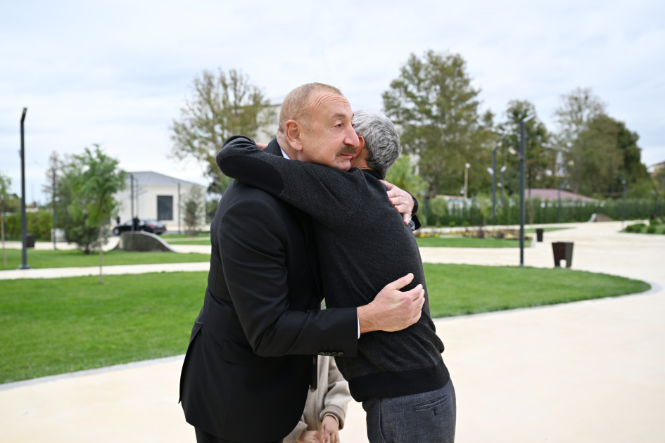 Sonra Prezident İlham Əliyev Gəncə Memorial Kompleksində Ermənistanın raket hücumu zamanı hər iki valideynini itirən Nilay Əliyeva və onun babası Zahid Babazadə ilə görüşdü.