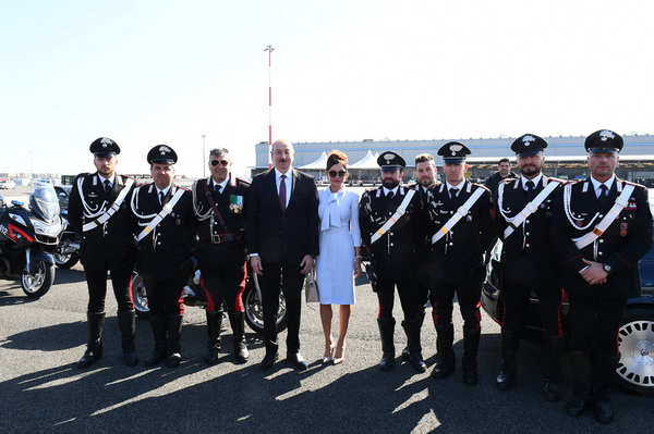 AZƏRTAC-ın xüsusi müxbiri xəbər verir ki, Romanın “Fiumicino” Beynəlxalq Hava Limanında dövlətimizin başçısının şərəfinə fəxri qarovul dəstəsi düzülmüşdü.