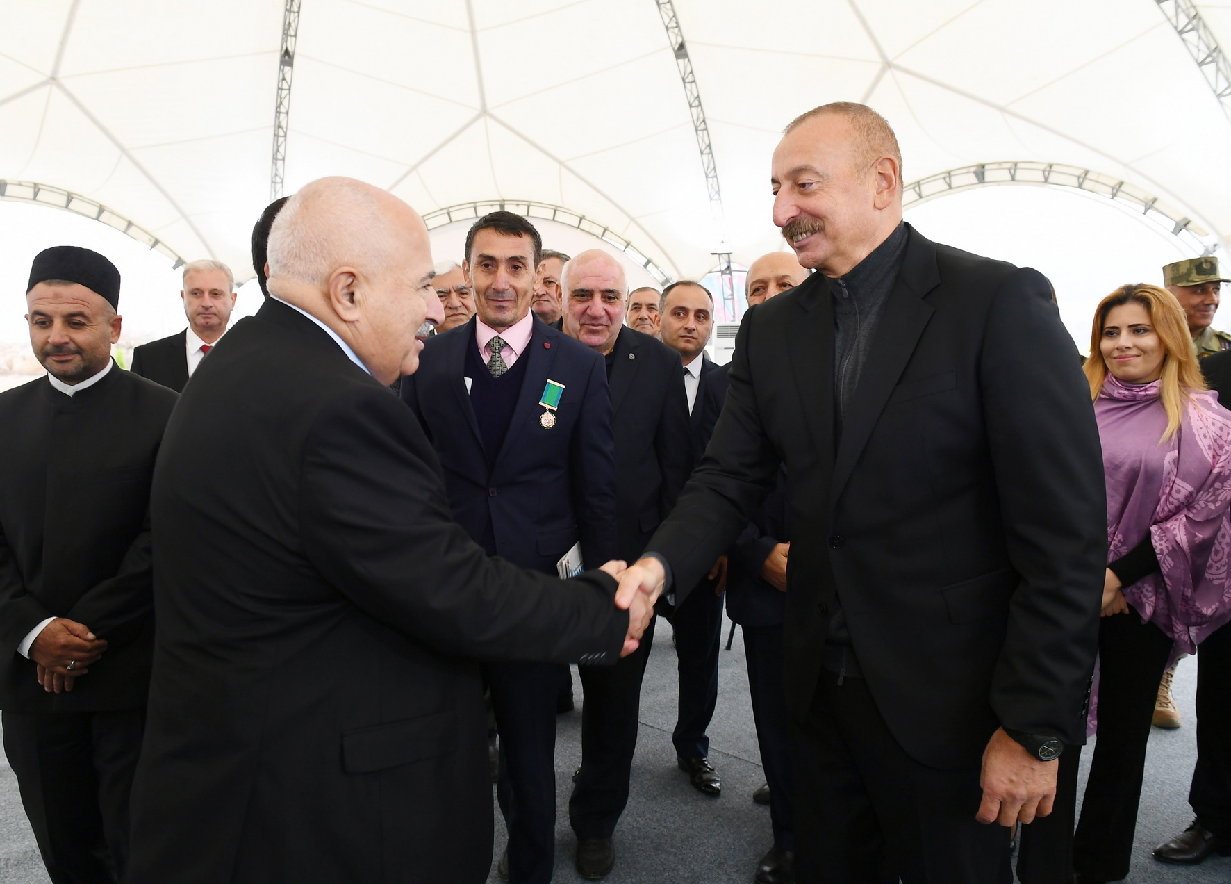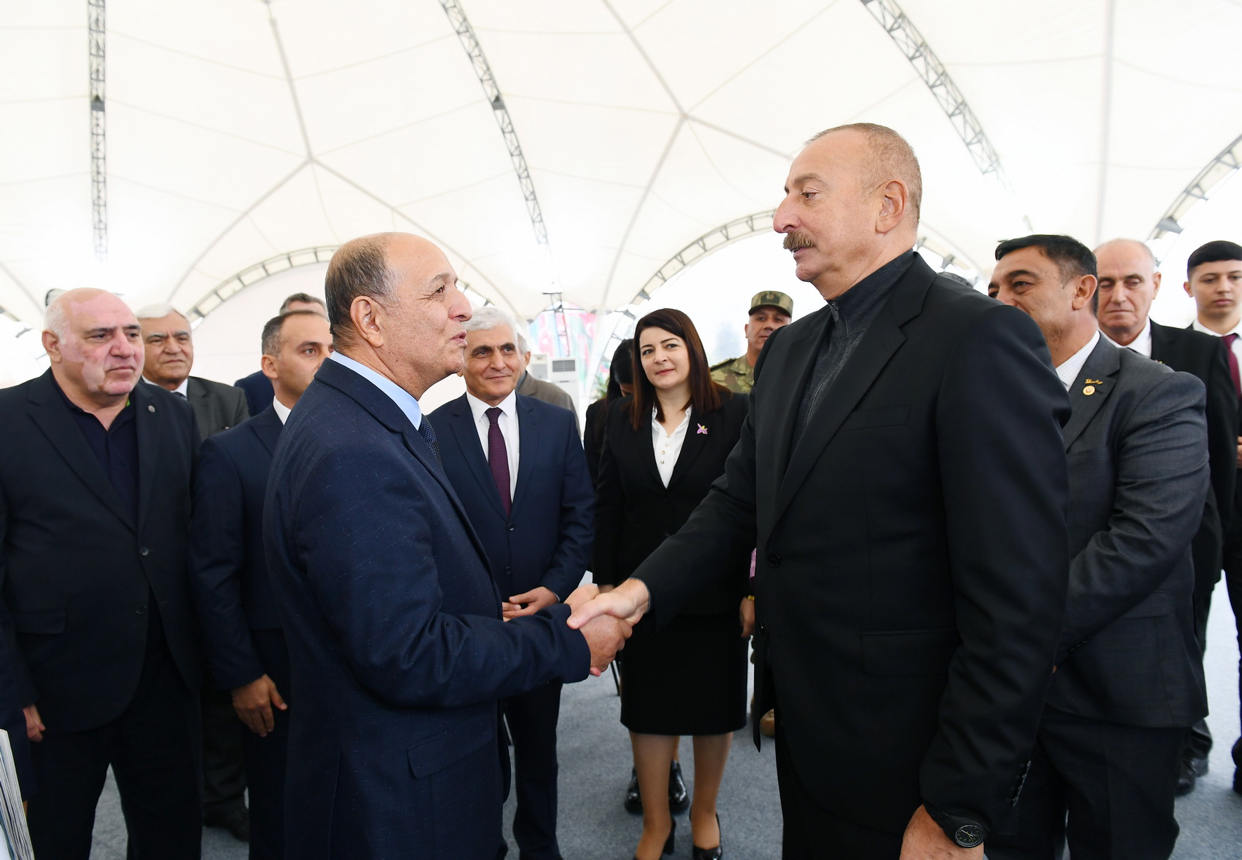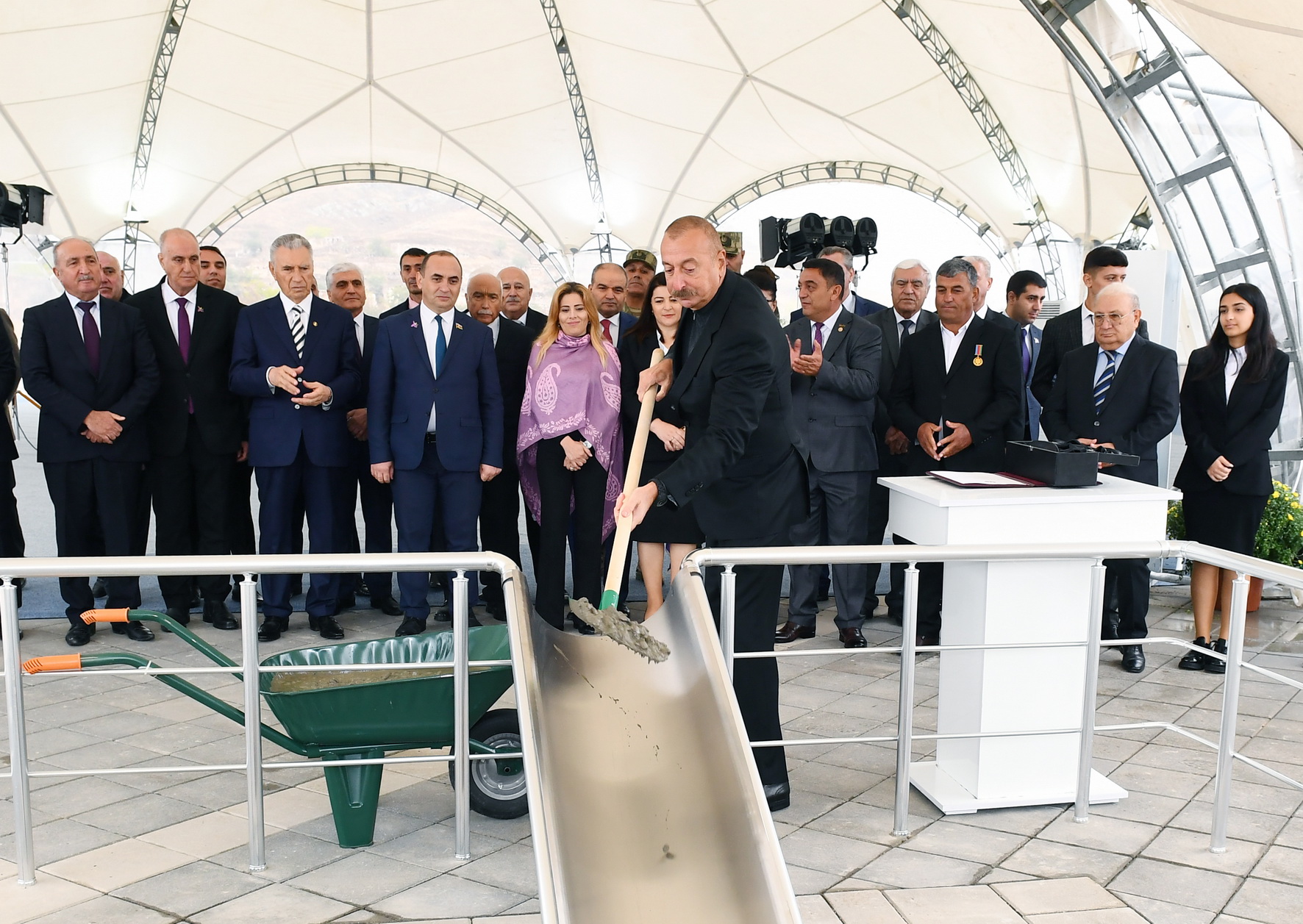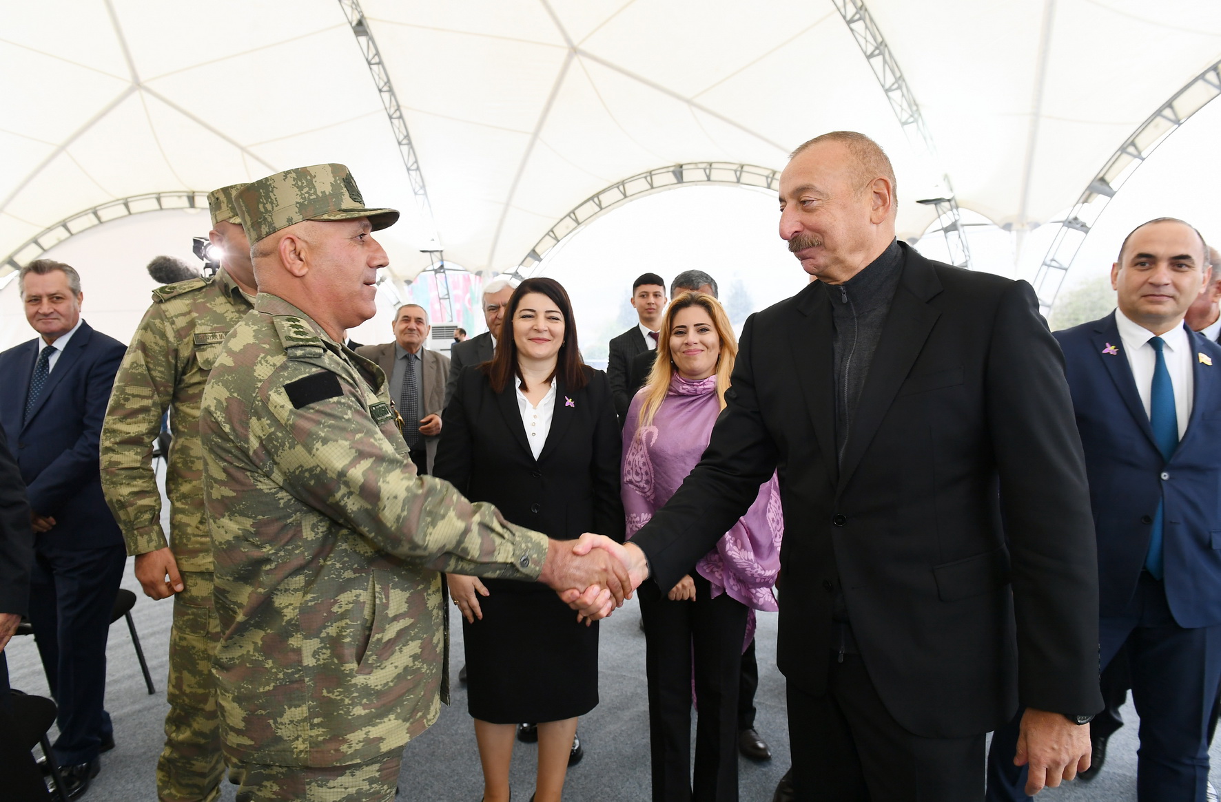Bu gün Cəbrayıl rayonunun inkişafı ilə bağlı çox önəmli gündür. Çünki bu gün artıq bir neçə obyektin təməli qoyuldu. Bu obyektlərin inşası və inşaatından sonra fəaliyyəti zamanı bir çox sosial-iqtisadi məsələlər öz həllini tapacaq. İlk növbədə, təhlükəsizliklə bağlı tədbirlər. Bu gün mən Dövlət Sərhəd Xidmətinin yeni hərbi hissəsinin açılışını etdim. Orada nümayiş etdirilən ən müasir silahlar, sursatlar bizim sərhədlərimizi möhkəm, lazımi səviyyədə qorumaq üçün bizə imkanlar yaradacaq. Bu gün iqtisadi fəallıq üçün önəmli addımlar atıldı. “Araz Vadisi İqtisadi Zonası”nın təməli qoyuldu. Bu, 200 hektarı əhatə edən böyük bir layihədir. Artıq ilkin maliyyə vəsaiti ayrıldı. İlkin investorlar da müəyyən olundu. Bu gün “KamAZ” şirkətinin vitse-prezidenti və Rusiyanın Tatarıstan Respublikasının Baş nazirinin müavini xüsusi olaraq Azərbaycana gəlib və mənimlə bərabər “KamAZ” regional xidmət mərkəzinin açılışında iştirak etmişlər. Bu da çox önəmli hadisədir. Artıq Rusiya şirkəti də bu bölgəyə investisiya qoymağa başlayıbdır. Bildiyiniz kimi, Türkiyə şirkətləri də artıq Zəngilan rayonunda böyük kənd təsərrüfatı layihəsinə investisiya qoymağa başlamışlar. Bizim iki dost, qonşu ölkəmiz Azərbaycana bax, bu münasibəti bəsləyir. Azərbaycan da onlara eyni xoş münasibət bəsləyir. Eyni zamanda, sosial obyektlərin təməli qoyuldu. Xəstəxana, məktəb, bütün bunlar buraya insanların qayıdışı üçün əsas şərtlərdir.