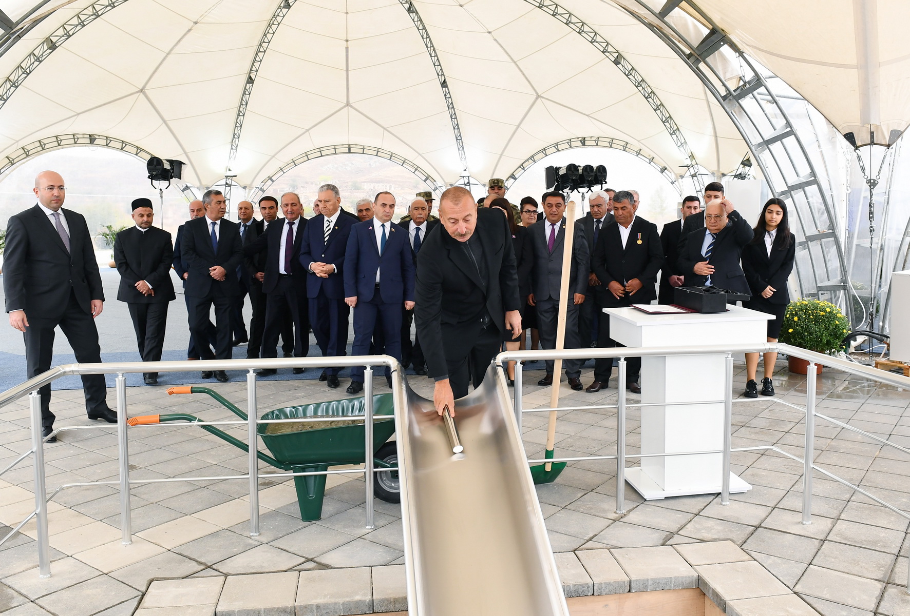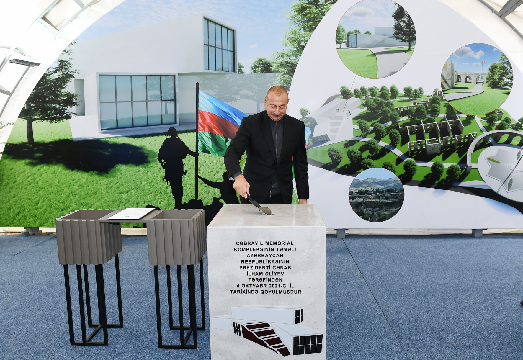 Azərbaycan Prezidenti İlham Əliyev oktyabrın 4-dəMemorial Kompleksin və şəhərin bərpasının təməl daşını qoyub.Yeniazerbaycan.com-un AZERTAC-a istinadən xəbərinə görə, mərasimdən sonra Prezident Cəbrayıl ictimaiyyətinin nümayəndələri ilə görüşüb.