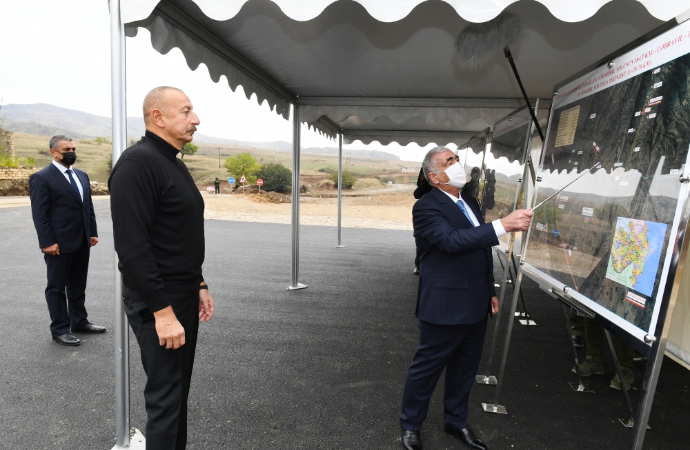 yeniazerbaycan.com AZƏRTAC-a istinadən xəbər verir ki, dövlətimizin başçısı Hadrut qəsəbəsində yeni məscidin təməlini qoyub, Hadrut-Cəbrayıl-Şükürbəyli, Tuğ-Hadrut və Füzuli-Hadrut yollarında aparılan tikinti işləri ilə tanış olub, 35 kilovoltluq yeni “Hadrut” yarımstansiyasının təməlini qoyub.