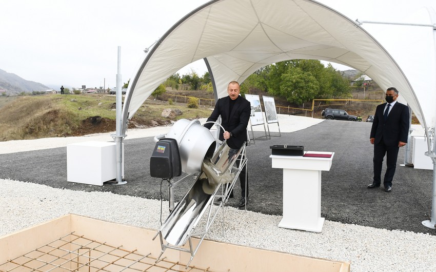 yeniazerbaycan.com AZƏRTAC-a istinadən xəbər verir ki, dövlətimizin başçısı Hadrut qəsəbəsində yeni məscidin təməlini qoydu.