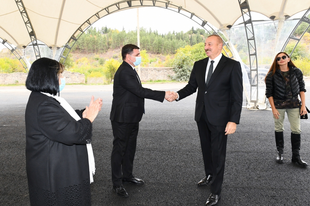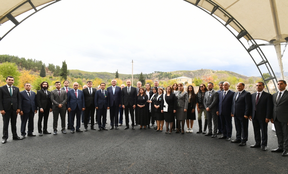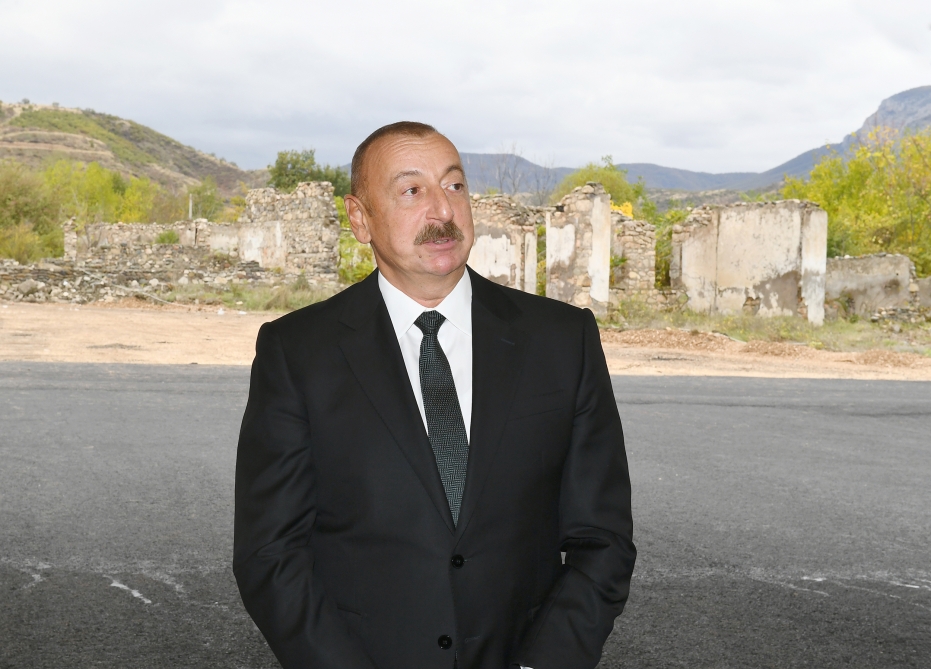 Prezident İlham Əliyev: Sağ olun. Zəngilan doğrudan da çox füsunkar təbiətə malik olan bir diyardır. Mən ilk dəfə Zəngilana keçən ilin sonlarında gəldim, dekabr ayında və o vaxt heyran oldum bu diyara. Əzəmətli dağlar, yaşıl meşələr, çaylar, iqlim - bura doğrudan da Azərbaycanın ən gözəl yerlərindən biridir və məqsədimiz də odur ki, Zəngilanı yenidən quraq. Çünki köhnə Zəngilandan bir şey qalmayıb. Siz indi görürsünüz, mənfur düşmən demək olar ki, bütün binaları dağıtmışdır. Bir neçə bina qalıb ki, orada hərbçilər yerləşirdi. Qalan bütün binaları, bütün kəndlərin binalarını bir məqsədlə dağıtmışlar ki, biz buraya qayıtmayaq. Amma biz qayıtmışıq, şanlı Ordumuz düz bir il bundan əvvəl Azərbaycan bayrağını Zəngilanda qaldırdı və düşməni bu torpaqlardan qovdu. Zəngilan azad olunandan sonra artıq yolumuz Qubadlıya açıldı və beş gün sonra Qubadlı azad olundu, ondan sonra da Laçın dəhlizinə çıxdıq. Laçın dəhlizinə çıxdıqda demək olar, düşmən də bildi ki, artıq müqavimət göstərməyin mənası qalmayıb.