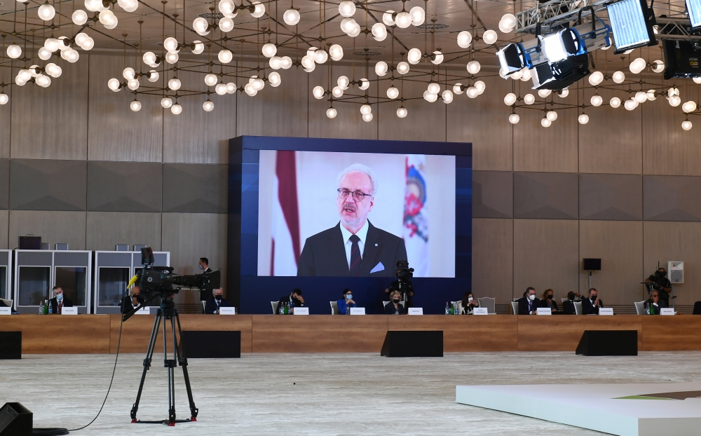 Latviya Prezidenti Eglis Levits videomüraciətində bildirdi ki, dünyanın hazırkı vəziyyəti dəqiq nizam-intizam və qlobal səfərbərlik tələb edir. Latviya Prezidenti bu istiqamətdə Azərbaycanın təşəbbüslərini yüksək qiymətləndirərək dedi: Bu baxımdan mən koronavirusa cavab olaraq 2020-ci ilin dekabrında BMT-nin Baş Assambleyasında xüsusi sessiya təşəbbüsü ilə çıxış etmiş Azərbaycanı alqışlamaq istərdim. Bu tədbir pandemiyaya qarşı qlobal səylərin səfərbər olunması məqsədilə BMT platformasının idarə olunmasına çox gözəl nümunə oldu. Ötən il Latviyanın COVID-19 şəraitində yalan məlumata qarşı mübarizə ilə bağlı BMT daxilində irəli sürdüyü regionlararası bəyanata verdiyi dəstəyə görə Azərbaycana bir daha təşəkkür etmək istəyirəm.