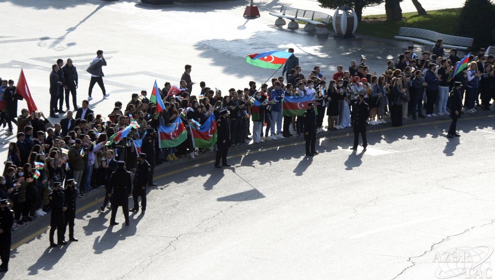 yeniazerbaycan.com-un məlumatına görə, saat 10-da hərbi orkestrin müşayiəti ilə başlayan yürüş Azneft dairəsindən “Ağ şəhər” bulvarınadək davam edib.