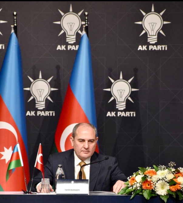 Çıxışı zamanı bu gün regionda və beynəlxalq miqyasda mühüm reallıqlardan birinin Azərbaycan-Türkiyə münasibətləri olduğunu vurğulayan YAP Sədrinin müavini - Mərkəzi Aparatın rəhbəri Tahir Budaqov deyib: “Biz mütəmadi olaraq belə bir ifadə eşidirik: “Dünyada Azərbaycan və Türkiyə qədər bir-birinə yaxın olan digər iki ölkə yoxdur”. Bu, tarixi, siyasi və mənəvi həqiqətdir. Çünki bu iki dövləti bir-birinə yaxınlaşdıran və bağlayan təkcə güclü strateji tərəfdaşlıq münasibətləri deyil, eyni zamanda, dostluq və qardaşlıq əlaqələridir. Milli dəyərlər və tarixi ənənələr üzərində təşəkkül tapmış bu qardaşlıq münasibətləri bənzəri olmayan birlik və həmrəylik nümunəsidir. Hər iki ölkənin milli maraqlarının, strateji mənafelərinin qorunması üçün bir-birinə güclü dəstək nümayiş etdirməsi isə bu baxımdan xüsusi vurğulanmalıdır”.