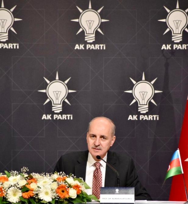 Qonaqları və tədbir iştirakçılarını salamlayan AK Parti sədrinin birinci müavini Numan Kurtulmuş Azərbaycan nümayəndə heyətini bir daha Türkiyədə görməkdən məmnunluq hissi duyduğunu bildirib. Ölkəmizin ümummilli lideri Heydər Əliyevin “Bir millət, iki dövlət” tezisini xatırladan AK Parti Sədrinin birinci müavini deyib: “Bir millət, iki dövlət” tezisi çərçivəsində Türkiyə ilə Azərbaycan arasındaki dostluq və qardaşlıq illər keçdikcə daha da dərinləşib, güclənib. Azərbaycanın Qarabağı işğaldan azad etdiyi 44 günlük müharibə zamanı Türkiyənin həm dövlət, həm də millət olaraq azərbaycanlı qardaşlarımıza verdiyi dəstək və sonrakı əməkdaşlığımızla Türkiyə-Azərbaycan münasibətləri yeni müstəviyə qədəm qoyub. Bu çərçivədə müharibədən sonrakı dövr ərzində Azərbaycanın azad edilən Qarabağ bölgəsinin abadlaşdırılması, yenidən qurulması yolunda Türkiyə bütün gücü ilə Azərbaycanın yanındadır. Həm infrastrukturun yenilənməsi, həm də oradakı kənd təsərrüfatı sahəsində əməkdaşlığın inkişafı üçün işlərimiz ciddi şəkildə davam edir. Xüsusilə iki ölkə liderinin imzaladığı Şuşa Bəyannaməsindən sonra ölkələrimiz arasındakı münasibətlərdə yeni dövr başladığı kimi, Qafqazda da yeni sülh perspektivi meydana gəlib. Uzun zaman davam edən işğala son qoyulması və beynəlxalq hüquqdan irəli gələrək Azərbaycanın Qarabağı işğaldan azad etmək istiqamətində keçirdiyi əməliyyat Zəfərlə nəticələndikdən sonra yeni dövrün başladığını hamımız görürük. Bu dövrün bundan sonrakı əsası Qafqazda sülhün bərqərar olmasıdır. Bunun üçün də Türkiyə, Azərbaycan, Rusiya, İran, Ermənistan və Gürcüstan bu bölgənin altı ölkəsi olaraq ortaq məsələlərini birlikdə həll etmək iradəsini ortaya qoyması Qafqazda yeni sülh dövrünün başlaması üçün vacib addımdır. Bu addımın atıla bilməsi üçün Türkiyə ilə Azərbaycan münasibətlərini sürətlə inkişaf etdirir. Bu çərçivədə hər sahədə olduğu kimi, dövlətlər və millətlər arasındakı münasibətləri daha da dərinləşdirmək istiqamətində yolumuza davam edirik. Yenə bu çərçivədə hər iki ölkənin iqtidar - Yeni Azərbaycan və Ədalət və İnkişaf partiyaları arasında çox güclü əlaqələr qurulub, bu münasibətlər iki dövlətin tək millət olaraq irəliyə doğru addımlamasında təkanverici qüvvə olacaq”.