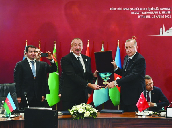 12 noyabr. Prezident İlham Əliyevə Türk Dünyasının Ali Ordeni təqdim olundu. İstanbulda Türkdilli Dövlətlərin Əməkdaşlıq Şurasının VIII Zirvə Görüşündə Ali Ordeni dövlətimizin başçısına Türkiyə Respublikasının Prezidenti Rəcəb Tayyib Ərdoğan təqdim etdi.