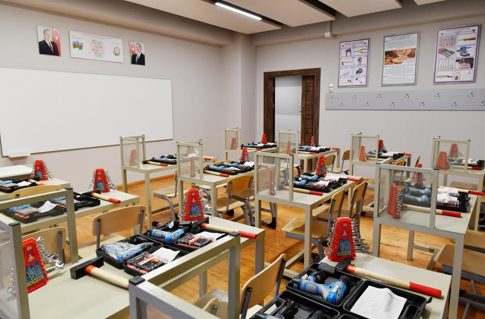Bildirildi ki, 1400 şagird yerlik məktəbin dördmərtəbəli binasında sinif, əmək, hərbi və kompüter otaqları, laboratoriya, kitabxanalar, yeməkxana və idman zalı var. Məktəb zəruri mebel və avadanlıqlarla, əyani vəsaitlərlə tam təchiz edilib. Məktəbin həyətində günəş, külək və mexaniki elektrik enerjisi qurğularının modelləri quraşdırılıb.