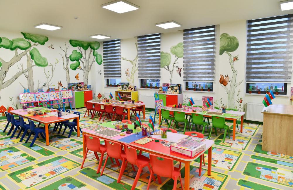 Bağça ilə tanış olan dövlətimizin başçısına və birinci xanıma məlumat verildi ki, burada qrup, yataq, oyun və yaradıcılıq otaqları, müəllimlər üçün metodiki otaqlar, idman və akt zalları, yeməkxana və mətbəx yaradılıb. Uşaq bağçası zəruri mebel və avadanlıqlarla təchiz edilib. Həyətyanı ərazidə oyun və idman meydançası da salınıb.