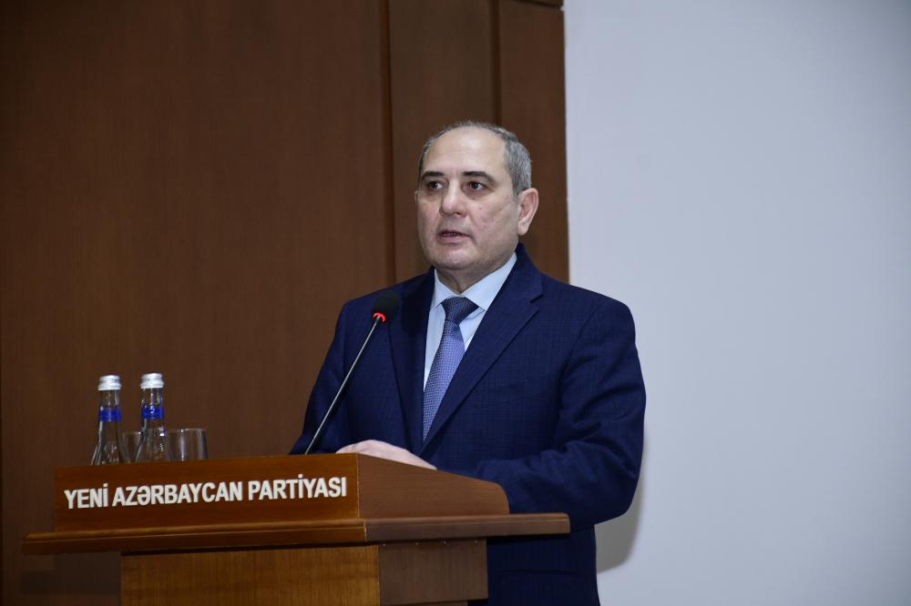 YAP Sədrinin müavini ötən ilin mart ayında keçirilən Yeni Azərbaycan Partiyasının VII Qurultayının ölkəmizin ictimai-siyasi həyatında mühüm hadisə olduğunu qeyd edərək diqqətə çatdırmışdır ki, qurultayda partiyamızın Sədri, Prezident İlham Əliyevin proqram xarakterli nitqi YAP üzvləri qarşısında yeni vəzifələr müəyyənləşdirir. Azərbaycanın Birinci vitse-prezidenti Mehriban xanım Əliyevanın YAP Sədrinin birinci müavini təyin olunması partiyamız və bütövlükdə cəmiyyət üçün mühüm əhəmiyyət kəsb etməklə yanaşı, partiyamızın və dövlətimizin daha da güclənməsinə xidmət edən mötəbər hadisədir.