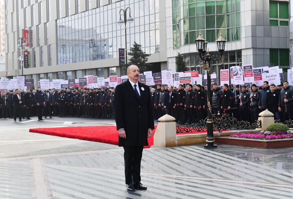 Prezident İlham Əliyev Xocalı soyqırımı abidəsinin önünə əklil qoydu, faciə qurbanlarının xatirəsini ehtiramla yad etdi.