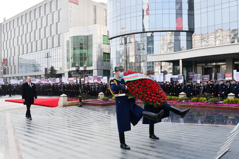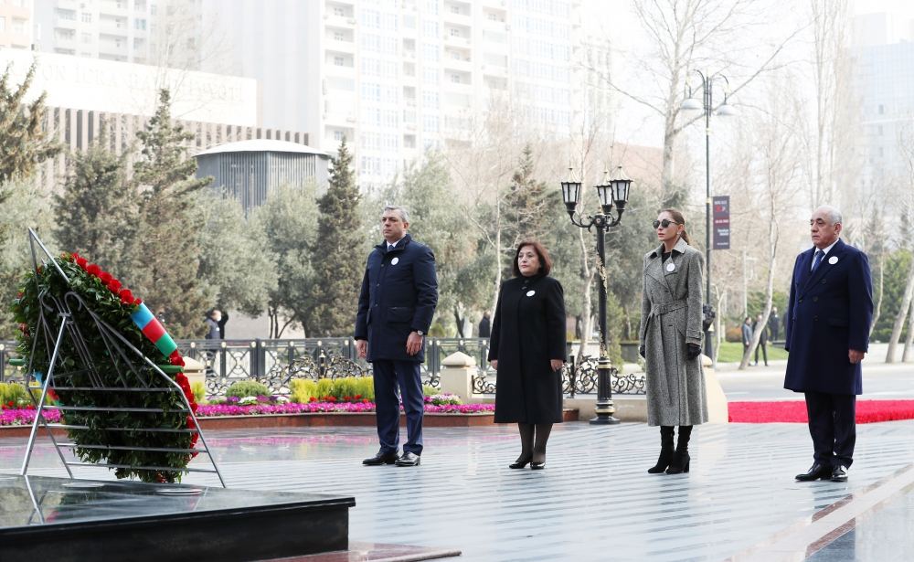Birinci xanım Mehriban Əliyeva, Baş nazir Əli Əsədov, Milli Məclisin sədri Sahibə Qafarova, Prezident Administrasiyasının rəhbəri Samir Nuriyev abidənin önünə gül dəstələri qoydular.