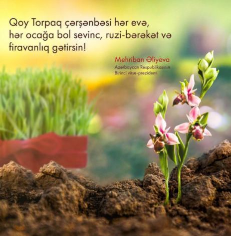 Azərbaycan Respublikasının Birinci vitse-prezidenti Mehriban Əliyeva rəsmi instaqram səhifəsində Torpaq çərşənbəsi münasibətilə paylaşım edib.