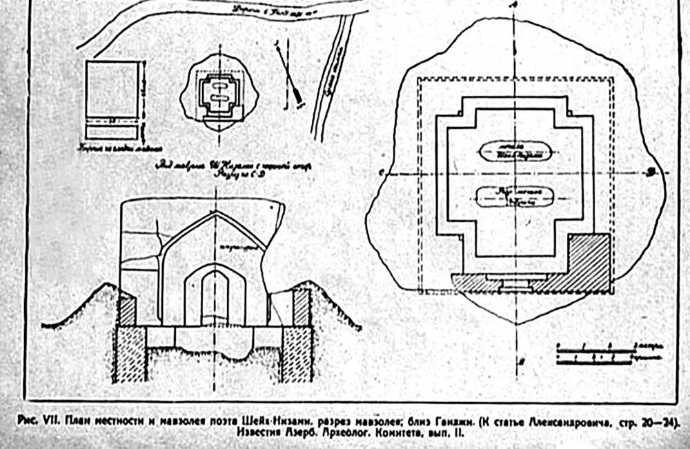 Milli memarlarımız tərəfindən əski oğuz üslubu ənənələrinə uyğun tikiləcək məqbərə Gəncənin simvoluna çevrilməli idi. Layihə müəlliflərinin bütün səylərinə baxmayaraq, məqbərə ətrafında aparılan abadlıq işləri zamanı Nizaminin qəbri yerləşən kurqanın böyük bir hissəsi dağıdılır və minə qədər qədim qəbir məhv edilir.