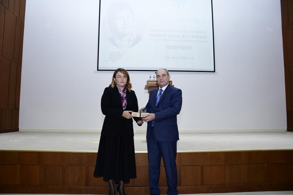 Konfransda Azərbaycan Respublikasının səhiyyə naziri Teymur Musayev “Zərifə xanım Əliyevanın zəngin elmi irsi Azərbaycan tibb elminin parlaq səhifəsidir” mövzusunda çıxış edib. O bildirib ki, tarixdə elə şəxsiyyətlər var ki, onların fitri istedadı, nadir biliyi və peşəkar bacarıqları, eyni zamanda insani keyfiyyətləri, qayğıkeşliyi və nəcibliyi gələcək nəsillər üçün nümunə və örnəkdir. Bu gün anadan olmasının 99-cu ildönümü geniş şəkildə qeyd edilən görkəmli oftalmoloq-alim, akademik Zərifə xanım Əliyeva özündə belə yüksək dəyərləri cəmləşdirən şəxsiyyətlərdən biri idi. Nazirin sözlərinə görə, Azərbaycanın görkəmli ictimai və dövlət xadimi Əziz Əliyevin ailəsində dünyaya göz açan Zərifə xanım çox zəngin və mənalı ömür yolu keçib. “Müasirləri tərəfindən “Cəmiyyətin təbibi” adlandırılan Əziz Əliyevin ömür yolu onun üçün əsl həyat məktəbi olub. Humanist və alicənab bir xanım, səmimi insan, nümunəvi həyat yoldaşı olan Zərifə xanımın ömür yolu bugünkü qadınlar üçün əsl örnəkdir. Onun insanlara məhəbbəti qeyri-adi dərəcədə idi. Neçə-neçə insanın gözünə işıq verən, onları həyata qaytaran görkəmli oftalmoloq həmişə xüsusi qayğıya ehtiyacı olan tənha insanlara və kimsəsizlərə böyük diqqətlə yanaşırdı. Zərifə xanım elə insan idi ki, bir dəfə ünsiyyətdə olanlar onu ömrü boyu unuda bilmirdilər. Bu böyük şəxsiyyət elə ilk andan onunla ünsiyyətdə olanların yaddaşında yüksək vətəndaşlıq, humanizm və ürək saflığının mücəssəməsi kimi əbədi qalırdı. Zərifə xanım sevib-seçdiyi, ömrünü həsr etdiyi sənəti ilə bu istedadını tam gerçəkləşdirə bilirdi. “İnsan biliyi ilə mütləq cəmiyyətə fayda verməli, xeyirxah əməlləri ilə özündən sonra iz qoymalıdır”, - deyən Zərifə xanım üçün xeyirxahlıq hər zaman həyat tərzi olub”, - deyə nazir bildirib.