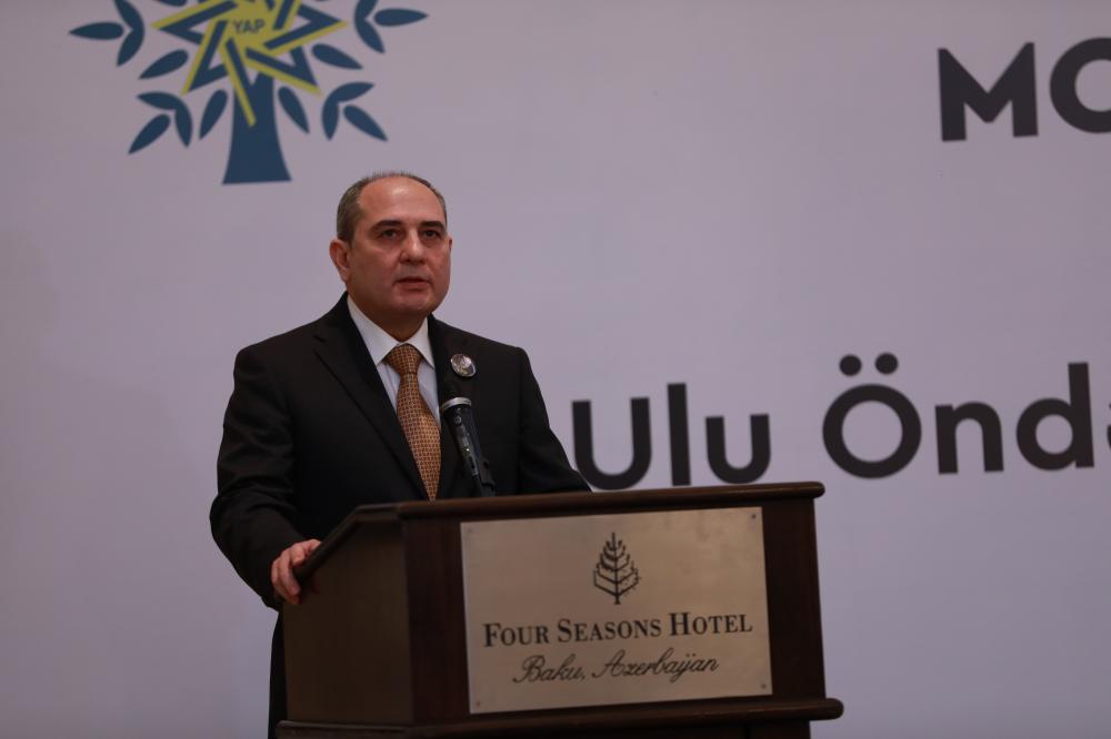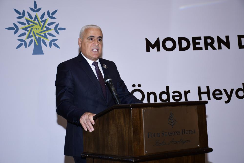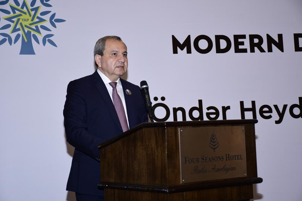 Konfransda giriş nitqi ilə çıxış edən YAP Sədrinin müavini-Mərkəzi Aparatın rəhbəri Tahir Budaqov bildirib ki, bu gün dünyanın siyasi mənzərəsi mürəkkəbdir. Ziddiyyətlər, qarşıdurmalar, xaos və anarxiya halları müxtəlif regionları, ölkələri öz ağuşuna alıb. Belə bir şəraitdə yalnız milli maraqlara uyğun səmərəli və müstəqil siyasət həyata keçirən dövlətlər sabitliyi, təhlükəsizliyi və dayanıqlı inkişafı təmin edə bilirlər. Azərbaycan təcrübəsi də bu baxımdan əlamətdar və nümunəvidir. Şübhəsiz ki, Azərbaycan bugünkü inkişaf mərhələsinə asanlıqla çatmayıb. Çoxəsrlik dövlətçilik tariximizin iki parlaq şəxsiyyəti - ulu öndər Heydər Əliyevin və Prezident İlham Əliyevin məqsədyönlü siyasəti sayəsində Azərbaycan güclü dövlətə, söz və nüfuz sahibinə çevrilib.