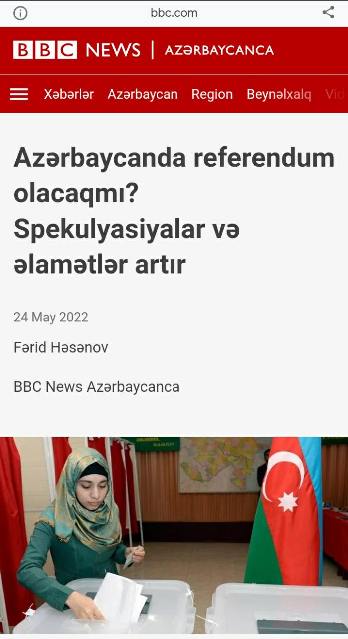 Bütün bu reallıqların fonunda müəyyən xarici dairələr saxta və süni gündəm yaratmaq üçün müxtəlif iddialar ortaya atır, dezinformasiya yayırlar. Bunlardan biri də Azərbaycanda guya yaxın zamanda referendumun keçiriləcəyidir. "BBC Azərbaycan" sosial şəbəkələrin də imkanlarından istifadə edərək bu barədə xəbərlər tirajlayır, ictimai fikrin diqqətini digər məsələlərdən (yuxarıda bəhs olunan reallıqlardan) yayındırmağa çalışır. Saxta referendum haqqında xəbərin "BBC Azərbaycan"ın feysbuk səhifəsində reklama qoyulması isə bu məqsədli və qərəzli informasiya kampaniyasının ünvanını aşkar etməyə (haradan gəldiyini müəyyənləşdirməyə) imkan verir.
