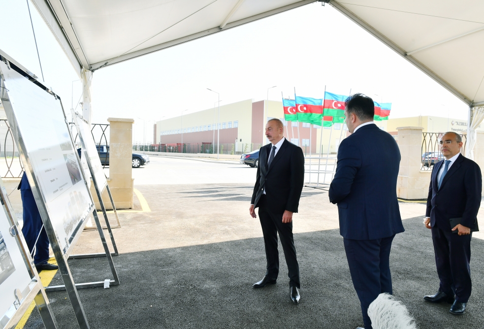AZƏRTAC xəbər verir ki, dövlətimizin başçısı əvvəlcə Sumqayıt Kimya Sənaye Parkında yeni istehsal müəssisələrinin açılış və təməlqoyma mərasimlərində iştirak edib.