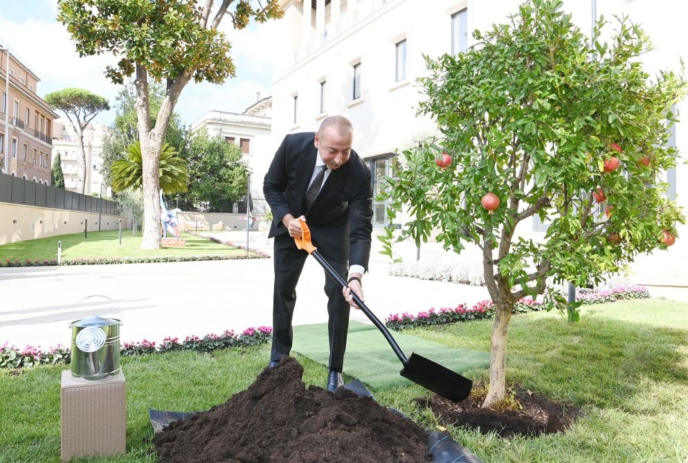 Əvvəlcə dövlətimizin başçısı səfirliyin həyətində ağac əkdi.